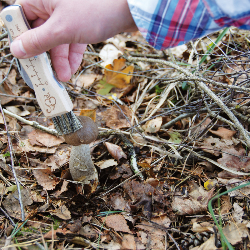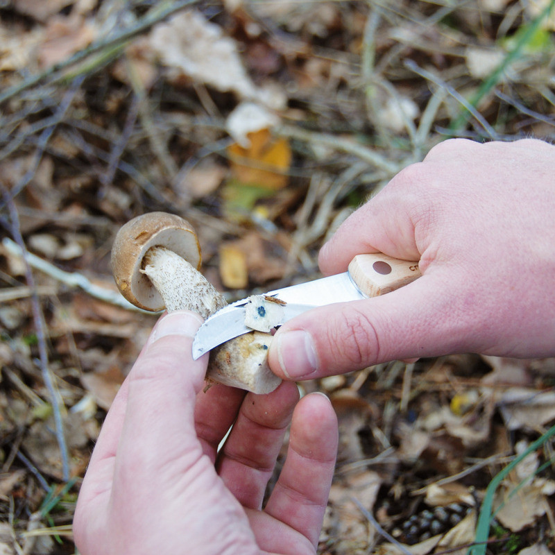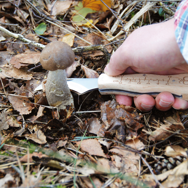 A rozsamentes acélból készült gombász kés tökéletes szerszám mindazoknak, akik szeretnek gombát gyűjteni, hiszen íves pengéjének köszönhetően minimális roncsolással lehet a gombák törzsét elmetszeni. A kés végén található praktikus disznósörte kefével a gombán lévő föld könnyen letisztítható. A markolaton lévő mércével a leszedett gombák magassága is egyből megállapítható. Kiváló ajándék minden természetjáró számára, hiszen a kést összehajtva kis helyen is elfér.