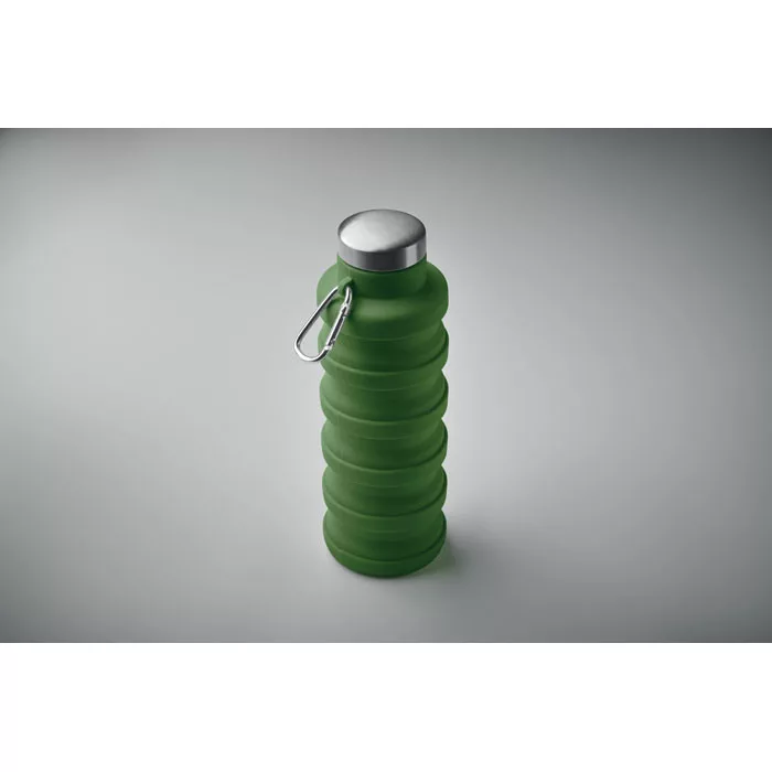 Összecsukható szilikon kulacs rozsdamentes acél fedéllel és alumínium karabinerrel. A karabiner hegymászásra, védőfelszerelés céljára nem alkalmas. Űrtartalom: 500 ml.