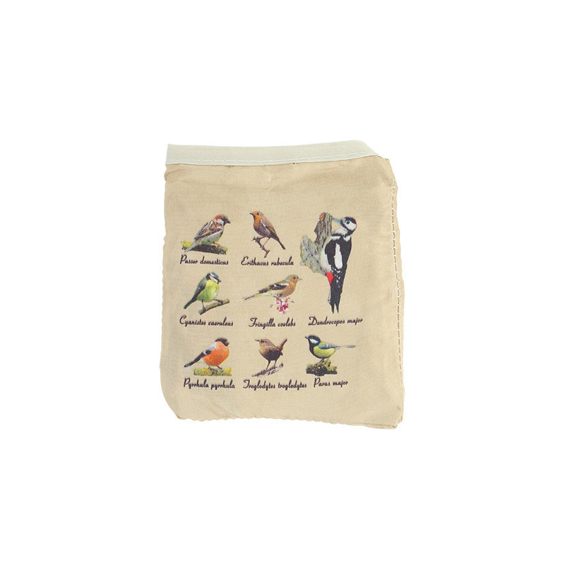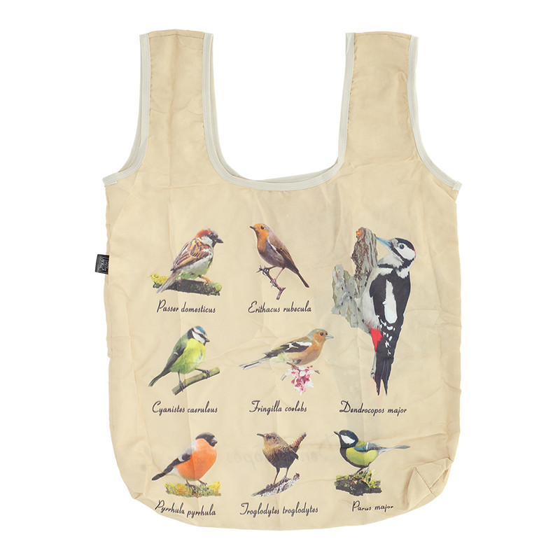 Madarak és azok latin neveivel díszített, praktikusan összehajtható bevásárló táska. A táskát összehajtva, kis zsebében tárolhatjuk, így az autóban vagy akár a táskánkban is egyszerűen elfér. Cseréld le az egyszer használatos műanyag zacskókat egy színes bevásárló táskára és ösztönözz másokat is a környezettudatosságra. Könnyedén elővehető bárhonnan, illetve tökéletes környezetkímélő választás, a feleslegesen eldobott reklámtáskák helyett. Keresse azonos mintájú esernyőnket és legyen stílusos a bevásárlások alkalmával is. Anyaga: poliészter