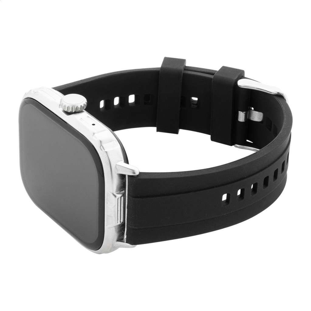 Többfunkciós vezeték nélküli okosóra fém házban 2,01"-es TFT érintőképernyővel, 210 mAh-s újratölthető akkumulátorral és szilikon szíjjal. Számos egészségfigyelő és intelligens funkcióval rendelkezik, mint például pulzusszám, vérnyomás és oxigén monitor. Csatlakoztatható okostelefonokhoz ingyenes alkalmazással iOS és Android számára. Mágneses USB töltőkábellel, IP65 vízállóságú.