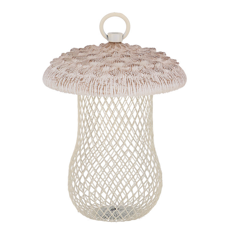 Őzlábgomba alakú mogyorótartó madáretető, 13 x 17 cm. Kényeztesd el a kerted madarait ezzel a gombaalakú madáretetővel! Az etető mogyoróval tölthető meg, és a felfüggesztő gyűrű meglazításával a fedél könnyen levehető és újratölthető. Ez a madáretető nemcsak praktikus, de dekoratív kiegészítője is lesz kertednek, biztosítva a madarak számára a szükséges táplálékot. A gyűrű segítségével könnyedén felakasztható, de asztalra is helyezhető a lapos aljnak köszönhetően.