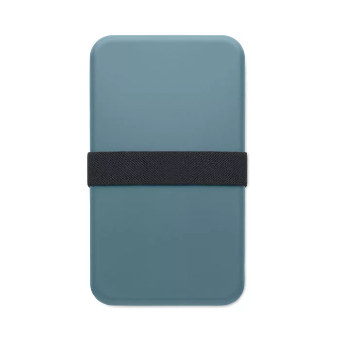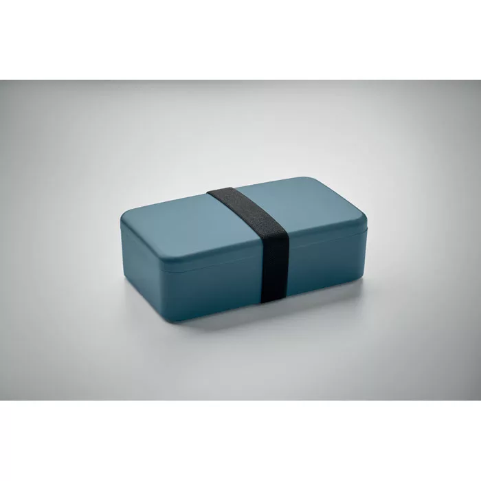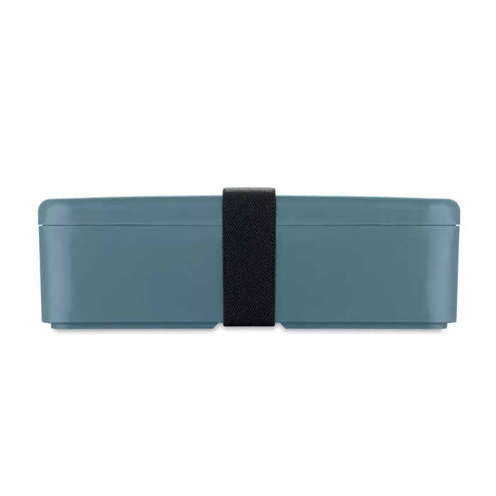 Uzsonnás- vagy ételtartó doboz PP-ből, RPET elasztikus rögzítőpánttal. Űrtartalom: 750 ml.