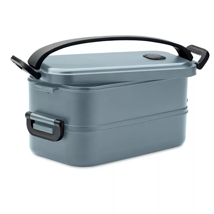 PP emeletes uzsonnásdoboz oldalsó zárócsatokkal, kivehető elválasztó résszel és légmentesen záródó fedéllel. Űrtartalom: 800 ml (2x).
