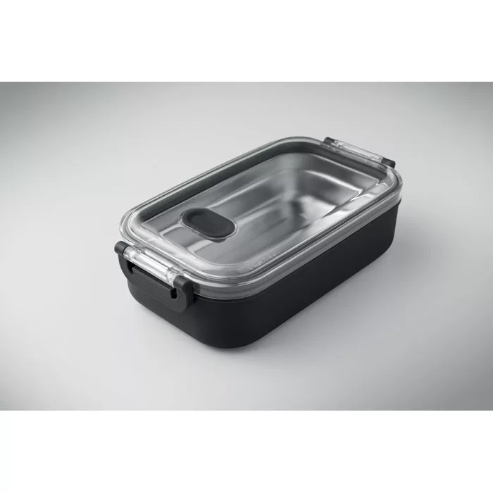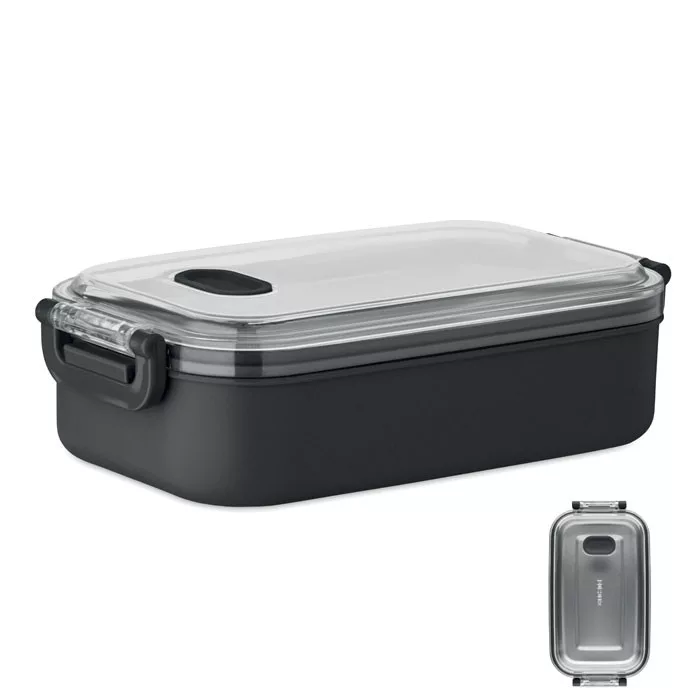 PP uzsonnásdoboz további újrahasznosított rozsdamentes acél belső réteggel. Légmentes AS fedéllel, amely frissen és biztonságosan tartja az ételt. Űrtartalom 750 ml tálca nélkül és 650 ml tálcával.
