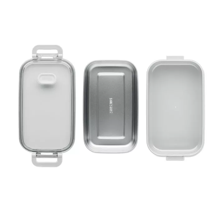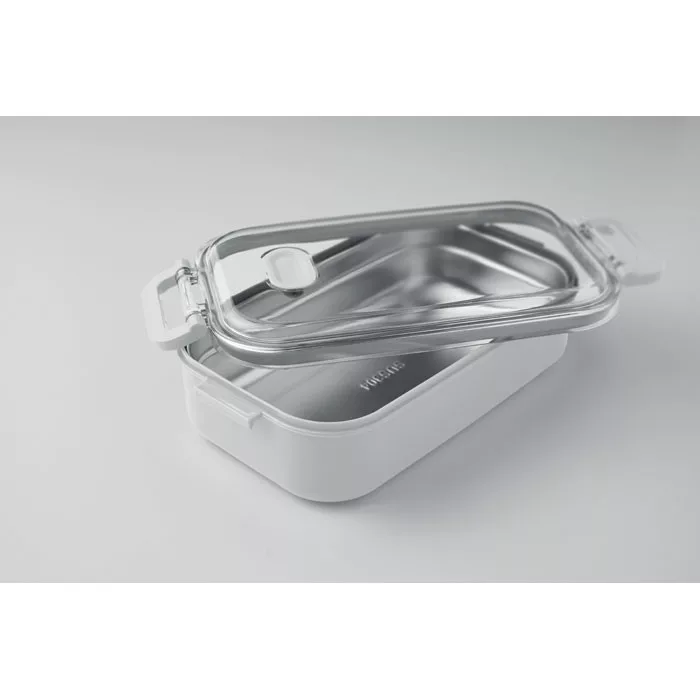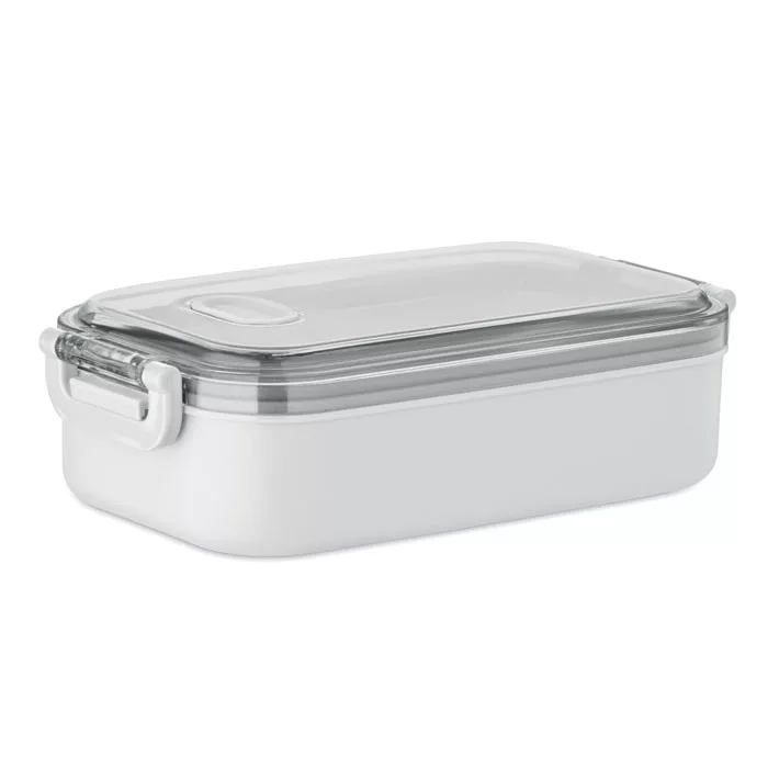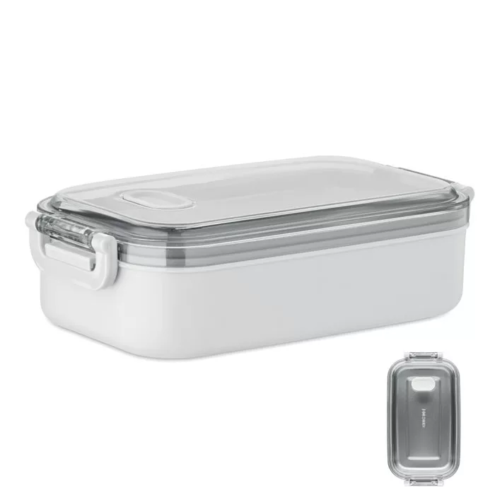 PP uzsonnásdoboz további újrahasznosított rozsdamentes acél belső réteggel. Légmentes AS fedéllel, amely frissen és biztonságosan tartja az ételt. Űrtartalom 750 ml tálca nélkül és 650 ml tálcával.