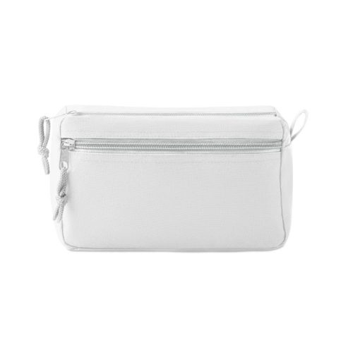 600D poliészter kozmetikai táska az oldalán cipzáras zsebbel. TPE belső borítással.