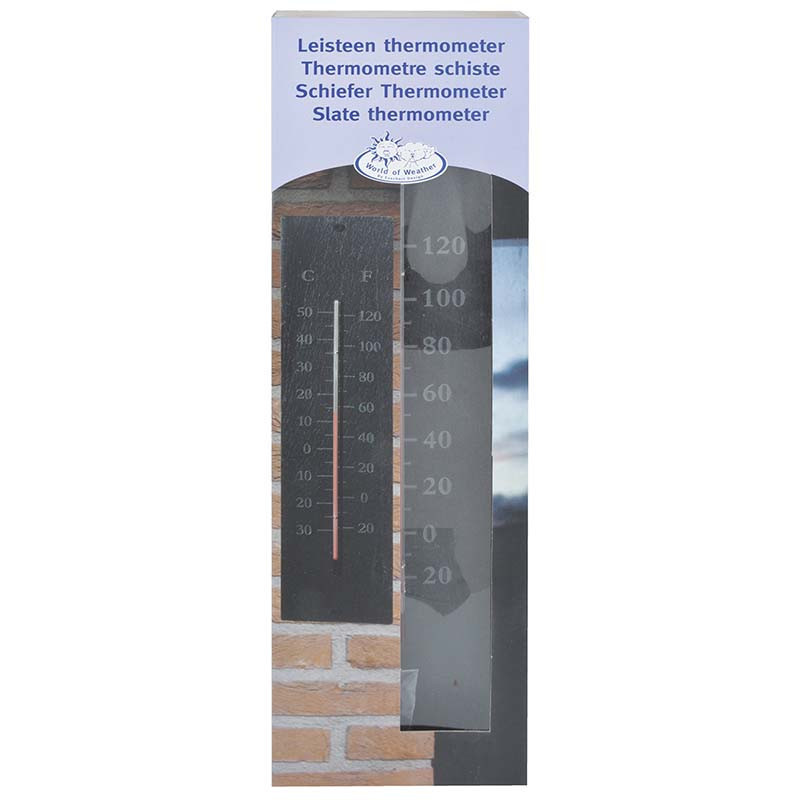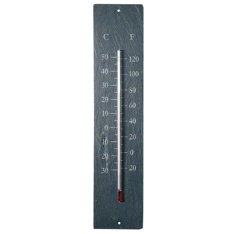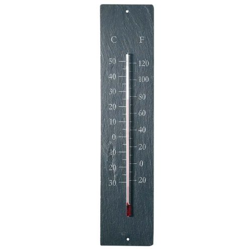 Szürke színű pala tábla hőmérő, amely kültéren és beltéren egyaránt használható. A hőmérő -30 és +50 celsius fok közötti hőmérséklet kimutatására alkalmas.