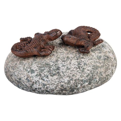Páros öntöttvas állatdíszek kövön, gyíkok