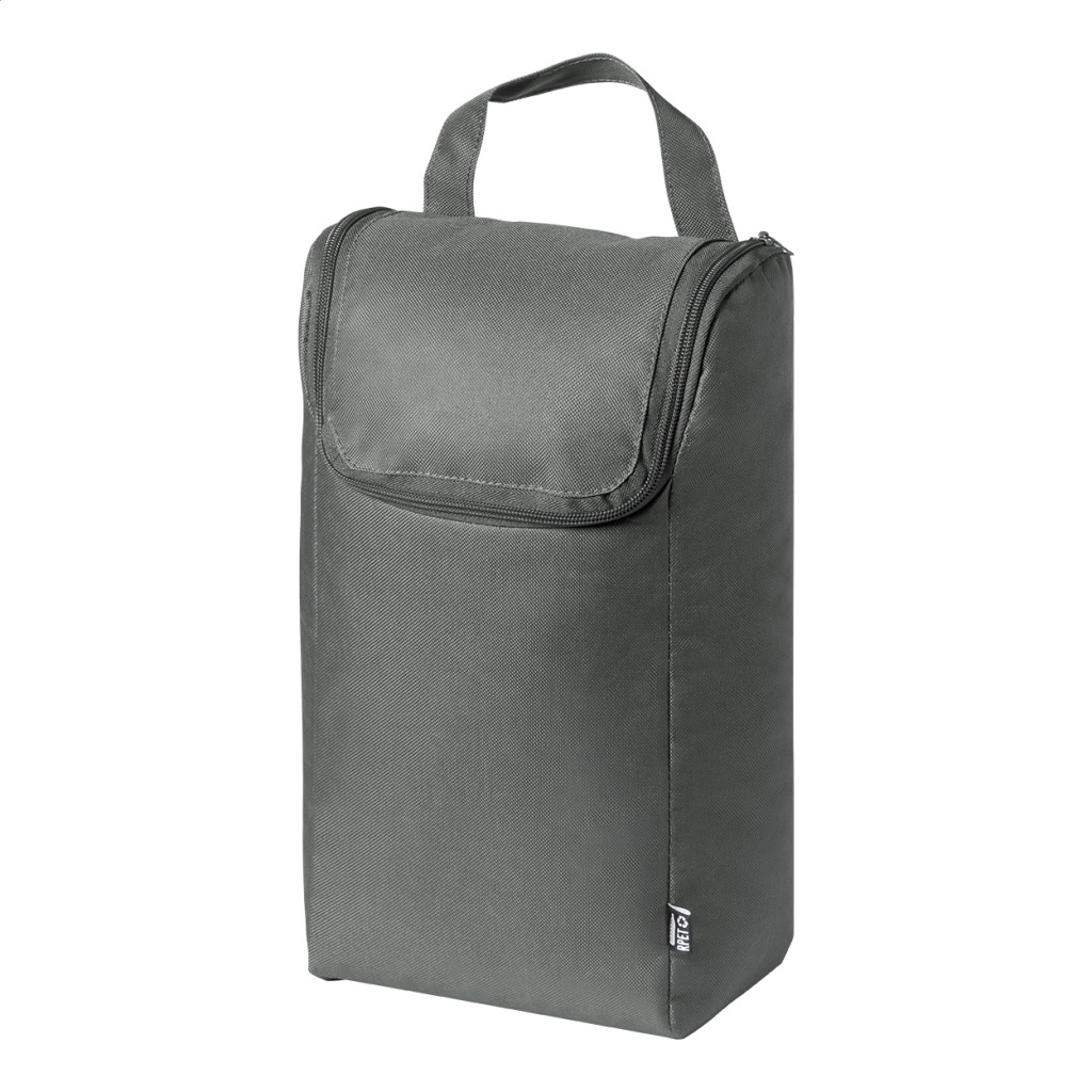 Cipzáras, 600D RPET poliészterből készült táska egy pár cipőhöz, megkülönböztető RPET címkével.