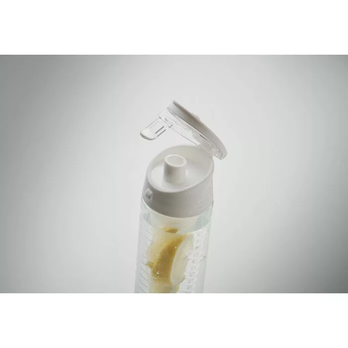 RPET kulacs kivehető gyümölcstartó betéttel, hordfüllel és szivárgásmentes fedéllel. Űrtartalom: 500 ml.