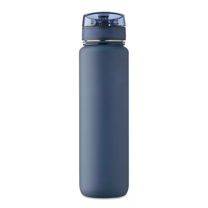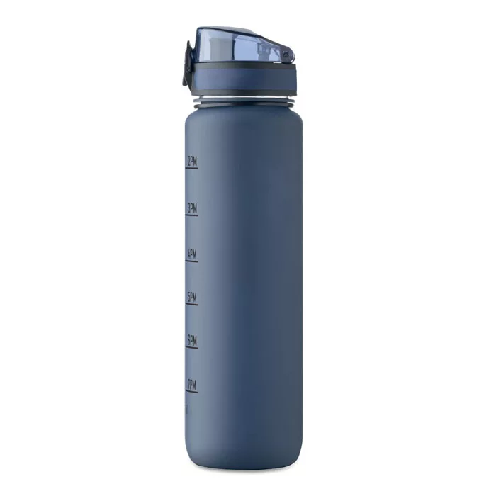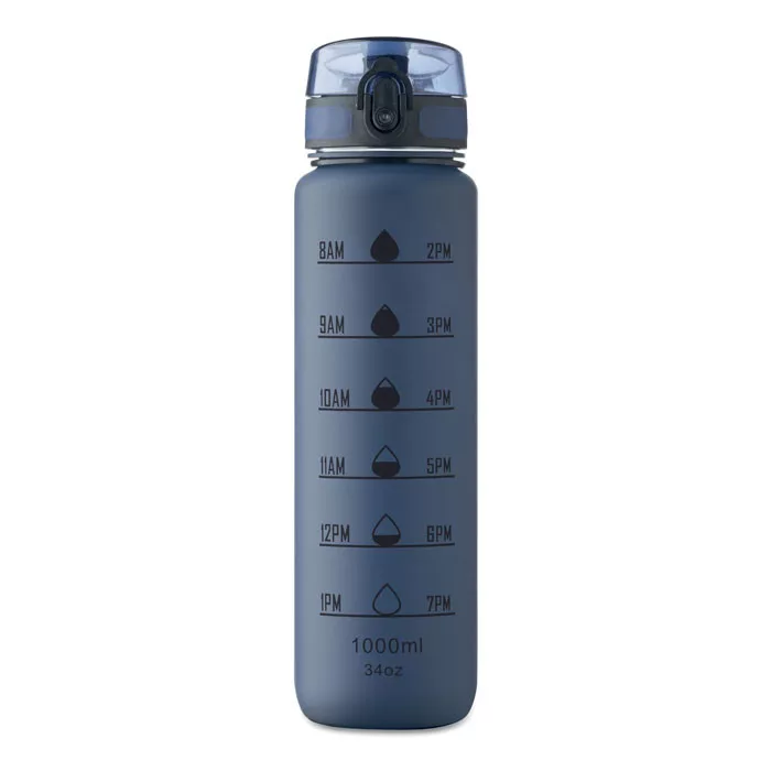 Sportkulacs RPET-ből, motivációs időjelzéssel, egy kézzel nyitható, felpattintható fedéllel, biztonsági zárral és hordfüllel.