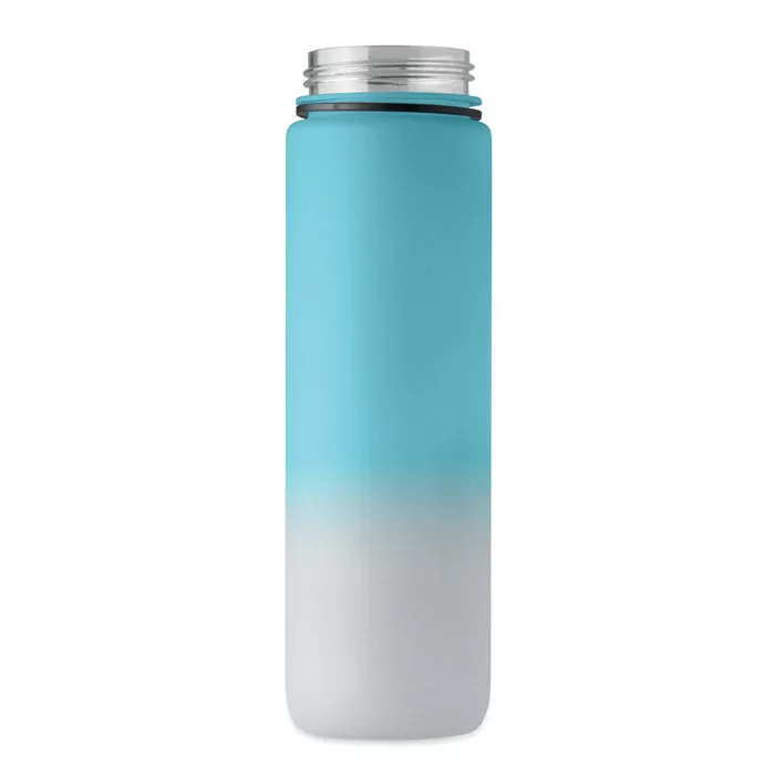 Sportkulacs RPET-ből, beépített szívószállal, puha szilikon ivórésszel, motivációs időjelzéssel, egy kézzel nyitható, felpattintható fedéllel, biztonsági zárral és hordszíjjal. Szivárgásmentes. Űrtartalom: 1 liter.