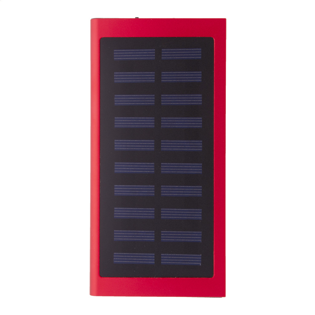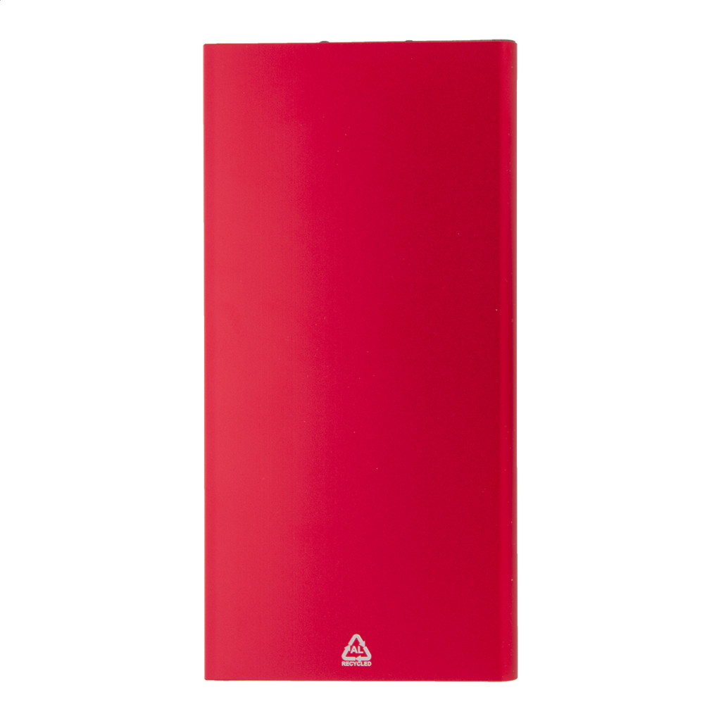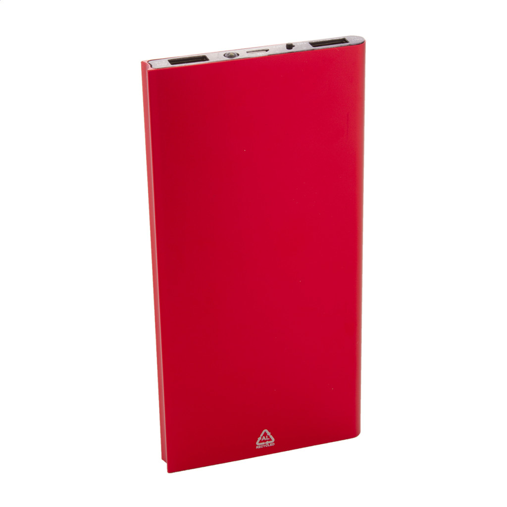 USB power bank újrahasznosított alumínium borítással, beépített napelemes töltővel és 4000 mAh-s akkumulátorral. 2 USB és 1 USB-C töltő porttal. USB-C bemenettel. USB töltőkábellel szállítjuk.
