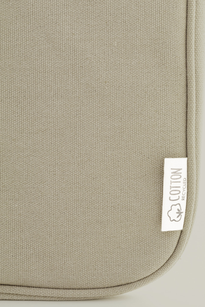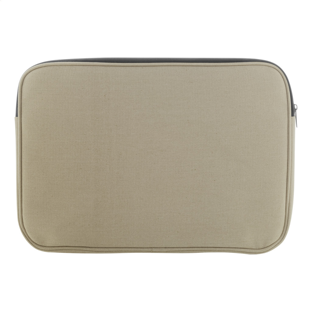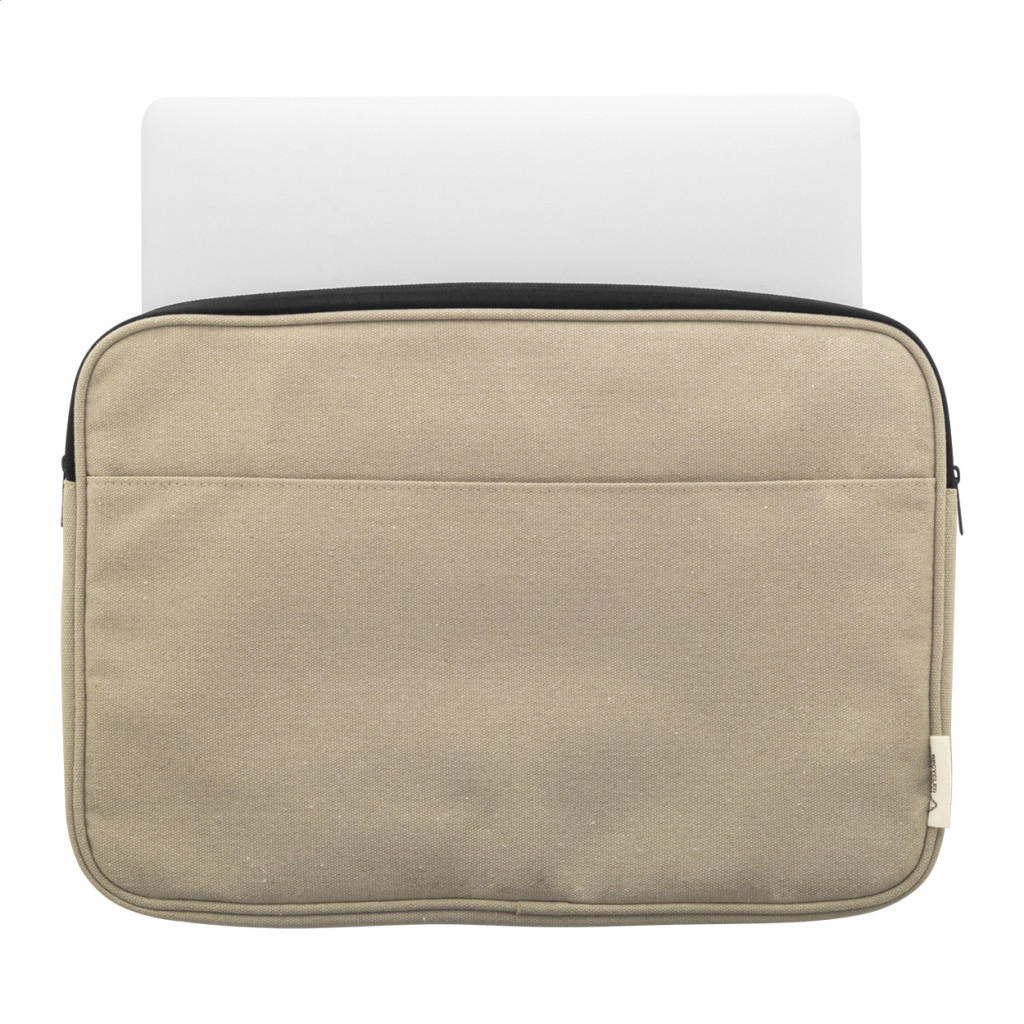 Teljesen párnázott újrahasznosított vászon laptoptáska cipzáras rekesszel és elülső zsebbel. Legfeljebb 15"-os laptopokhoz használható. 70% újrahasznosított pamut és 30% RPET poliészter. Megkülönböztető újrahasznosított pamut címkével.