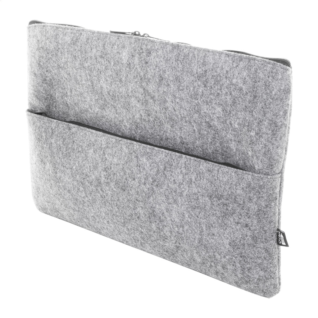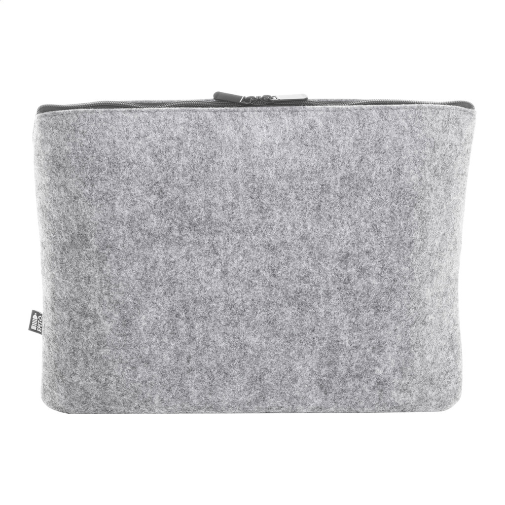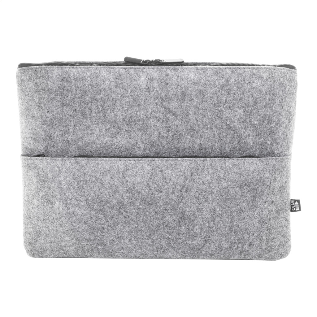 RPET filc laptoptáska cipzáras rekesszel és elülső zsebbel. Legfeljebb 15"-os laptopokhoz használható, megkülönböztető RPET címkével.