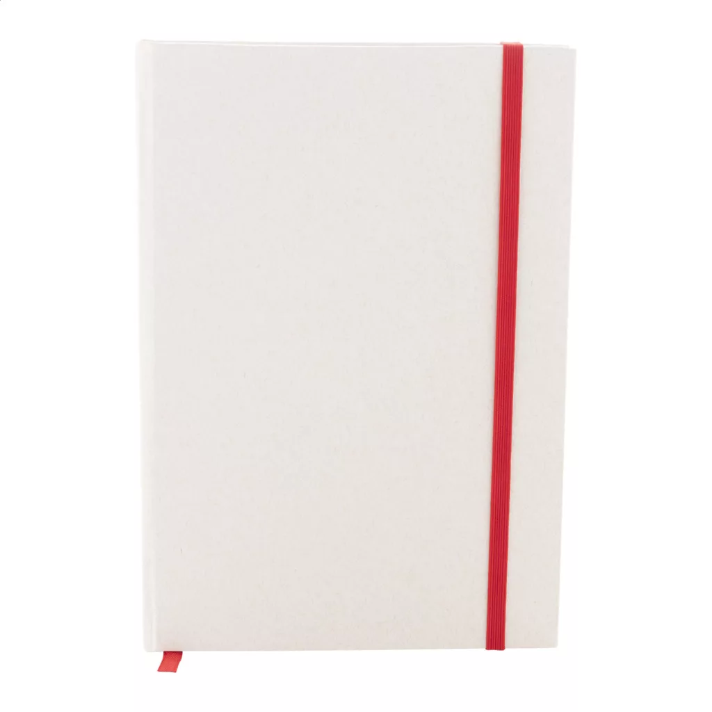 Újrahasznosított tejesdoboz anyagú jegyzetfüzet kemény borítóval és 80 vonalas lappal. Hozzáillő színű gumiszalaggal. A5 méretű.
