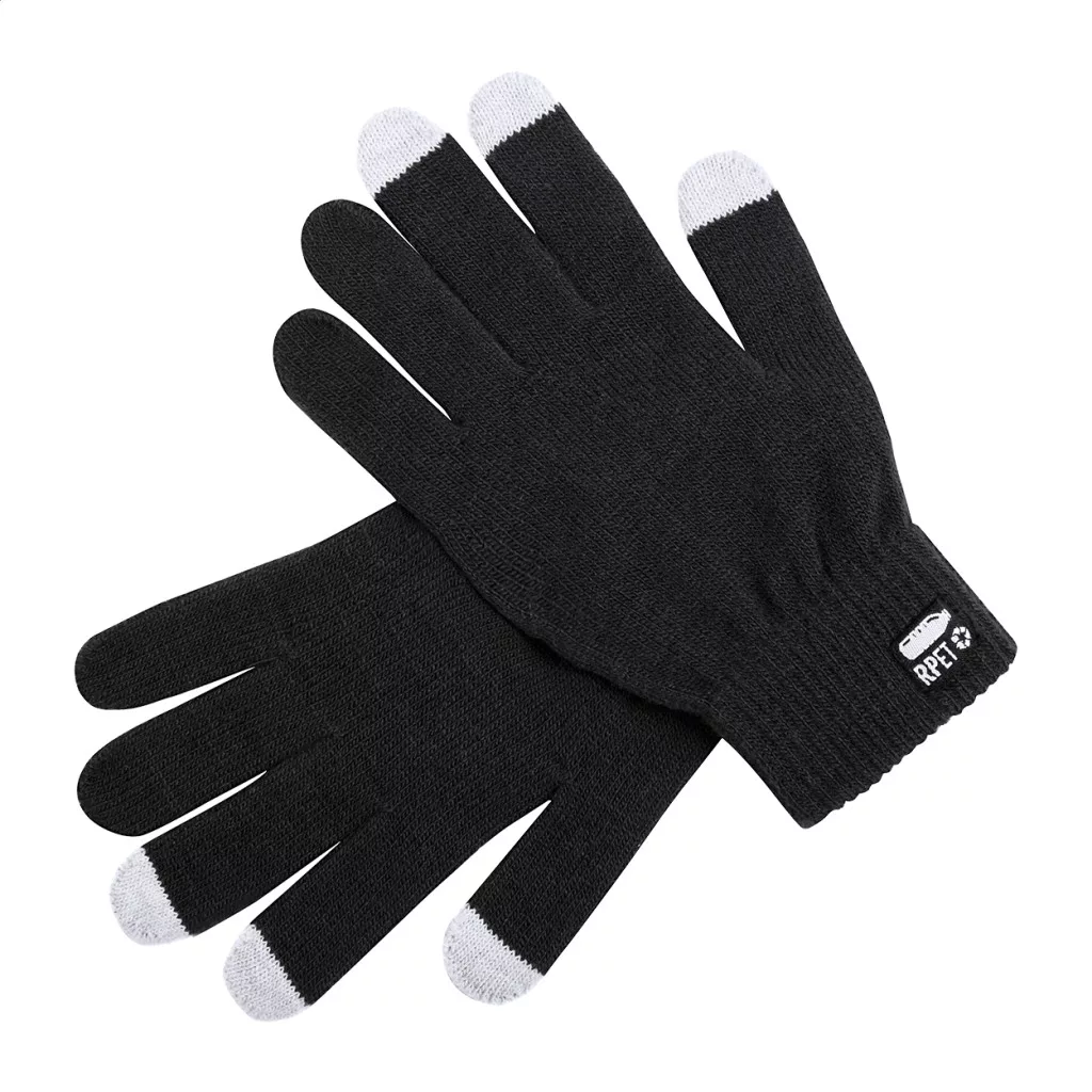 Érintőképernyős kesztyű felnőtt méretben 3 ujján speciális borítással, RPET poliészter. Egy méretben kapható.