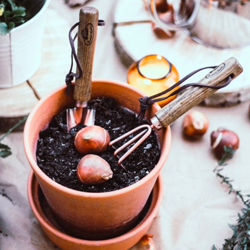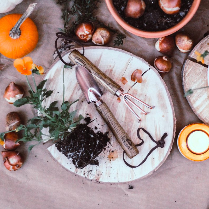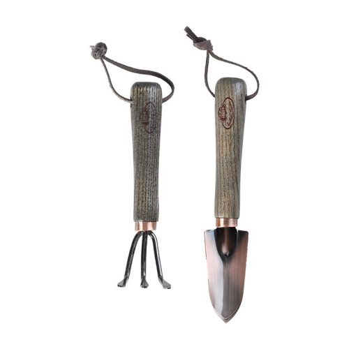 Rézzel bevont kerti eszközök kis méretben, bőrből készült akasztóval. Ideális konyhakertek, nyári kertek földmunkáihoz. Hobbi kertészeknek kifejezetten ajánljuk. Réz bevonatának köszönhetően kevésbé korrodálódik az idő elteltével. A szett egy ásót és egy villát tartalmaz.