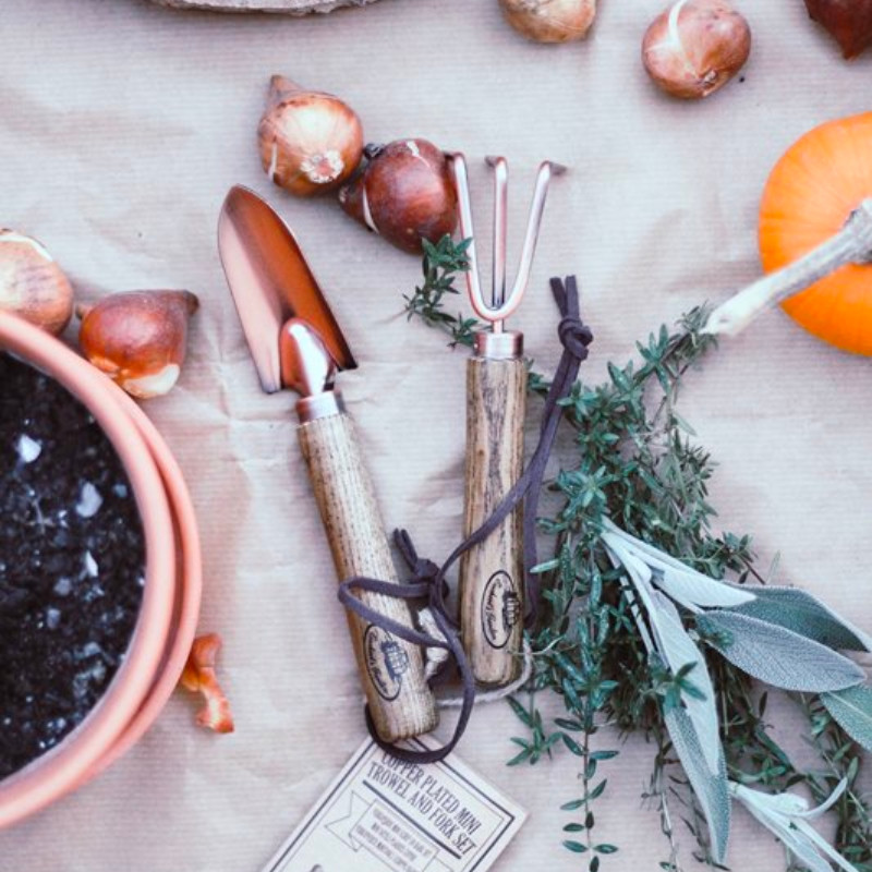 Rézzel bevont kerti szerszámok kis méretben