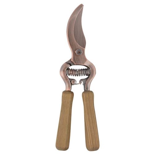 Rézzel bevont metszőolló, kőrisfa nyéllel, 20,5 cm