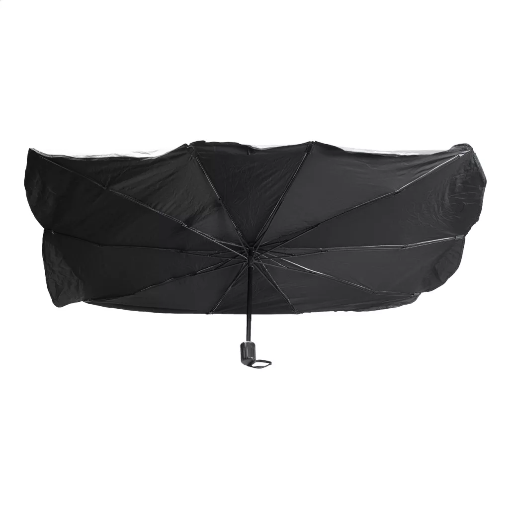 Kihajtható autós napellenző ernyő szélvédőre fém szegéllyel, poliészter tasakban.