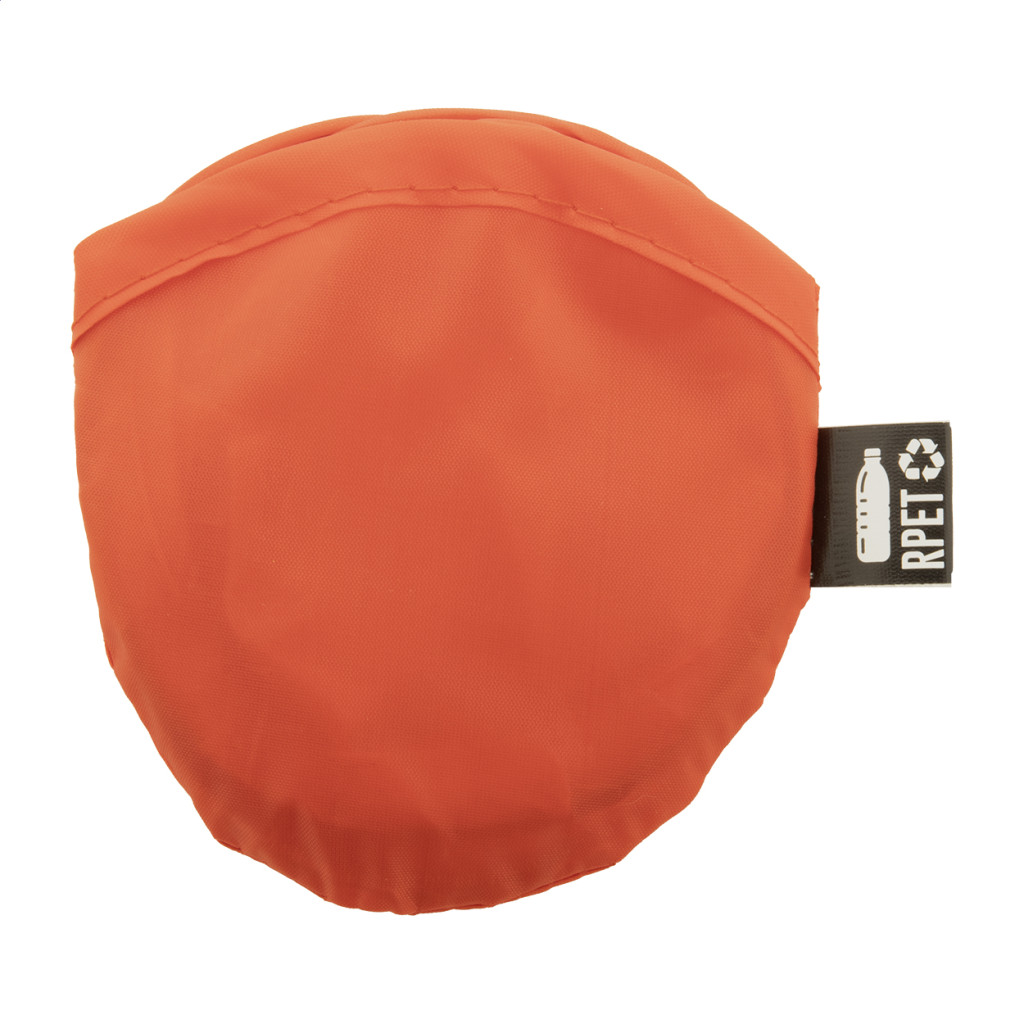Összehajtható RPET poliészter frizbi tokkal. Megkülönböztető RPET címkével.