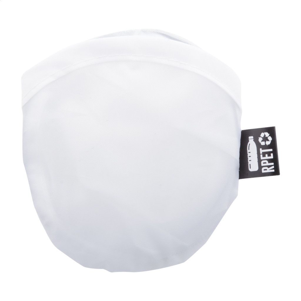 Összehajtható RPET poliészter frizbi tokkal. Megkülönböztető RPET címkével.