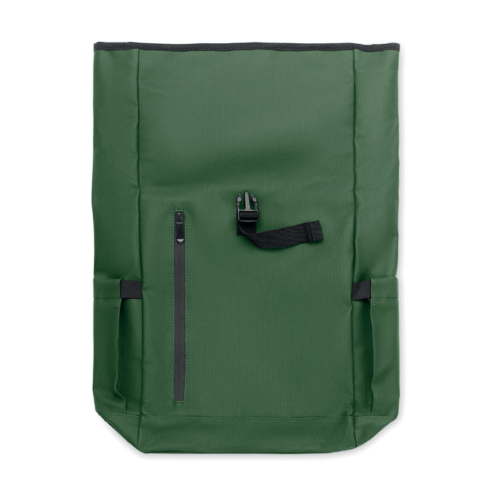 Rolltop csavart záródású, 15 colos laptop hátizsák PU bevonatú 600D RPET poliészterből, RPET poliészter béléssel.