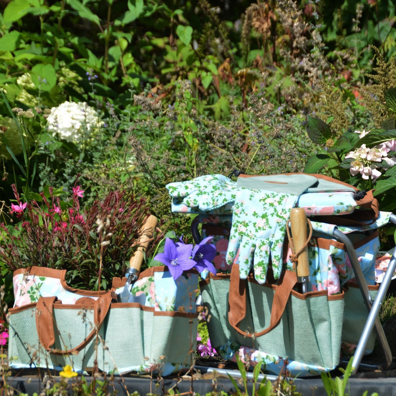 Egyedi megjelenésű, kihajtható, rózsa mintás kerti szerszámos szék, praktikus zsebekkel. Kerti szerszámok és eszközök hordozására is kiválóan alkalmas, remek ajándékötlet a kertészet szerelmeseinek. Szerszámok nélkül szállítjuk.