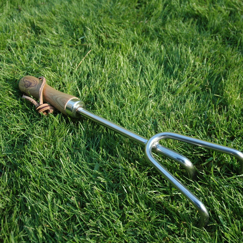 Kézi gereblye rozsdamentes acélból, fa nyéllel. Klasszikus stílusú fém gereblye kisebb talajrendezési, talajlazítási munkákra. Az ergonomikus, kőrisfa nyél kényelmes fogást biztosít a kerti munkák során, a dekoratív bőrszíjon felakasztva pedig használaton kívül is stílusosan tárolhatod. Tartós kivitelének köszönhetően több szezonon keresztül is nélkülözhetetlen kellék lesz a kertben. Keresd a stílusban tökéletesen hozzáillő kerti szerszámokat webáruházunkban!