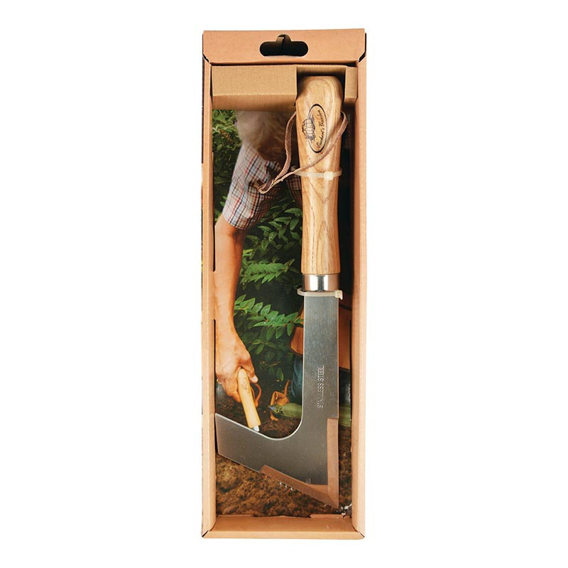 Rozsdamentes acélból készült, kőrisfa nyéllel ellátott gyomláló, amely kifejezetten a járdaszegélyeket segít mentesíteni a gyomtól. Speciális kialakítású, hatékony kerti eszköz, amely nagyban segíti munkánkat. A rajta található bőr akasztó segítségével könnyen feltehetjük a többi szerszám közé.
