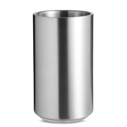 Duplafalú, henger alakú rozsdamentes acél palackhűtő.
