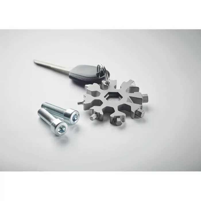 Hópehely alakú, többfunkciós 17 az 1-ben szerszám rozsdamentes acélból.