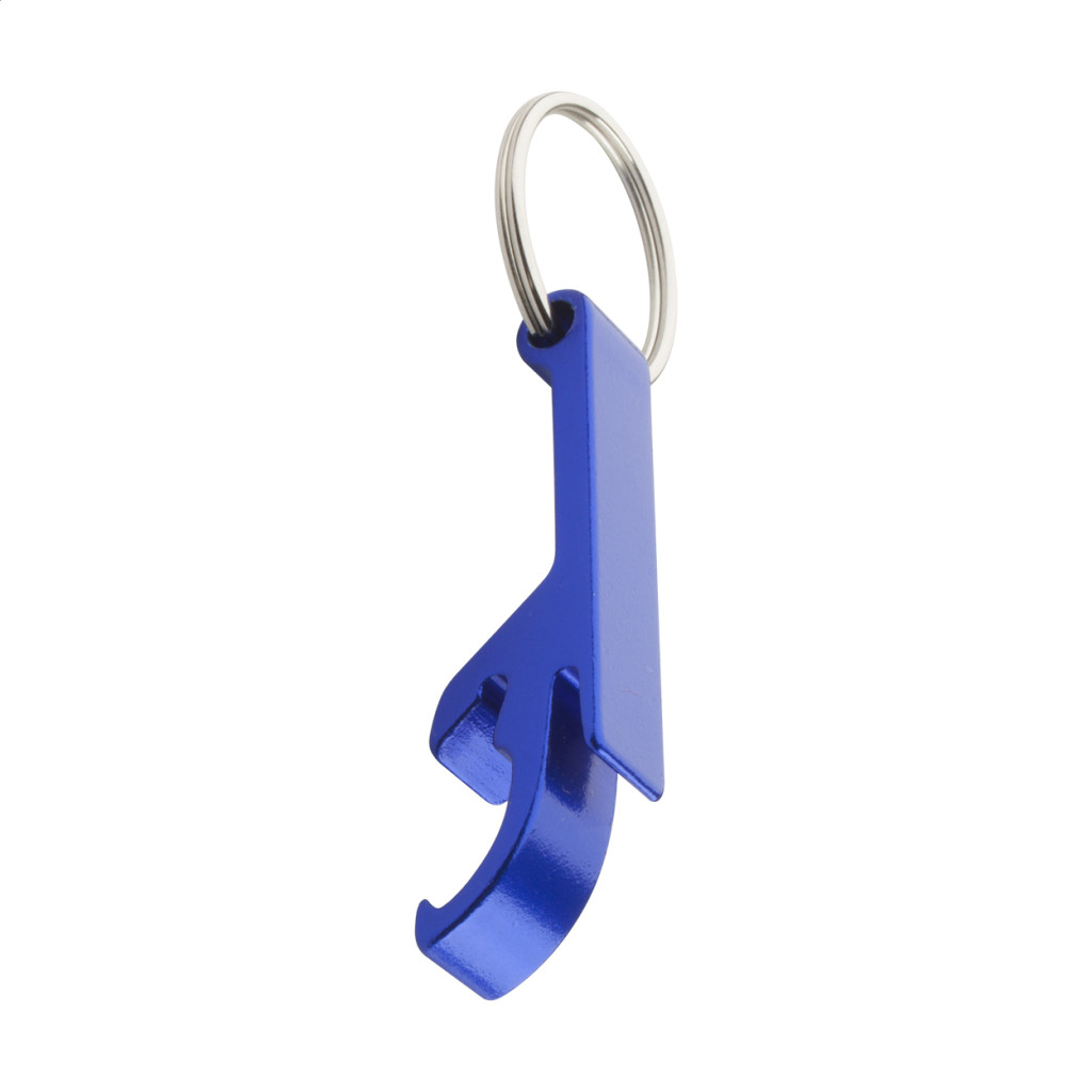Alumíniumból készült üvegnyitó, kulcskarikával.
