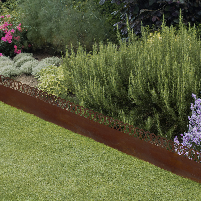Ez a rusztikus stílusú fém ágyásszegély ideális választás, hogy kerted rendezett és esztétikus legyen, miközben praktikus módon elválasztja a különböző területeket.