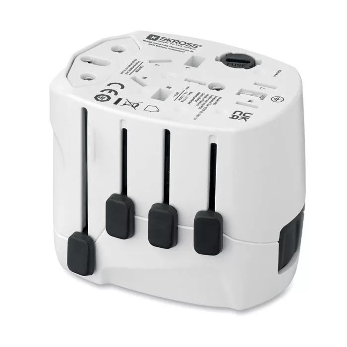 SKROSS® PRO — univerzális, 3 pólusú utazó adapter Európába, az USA-ba/Japánba, Ausztráliába és Kínába. Földelt kivitel az extra biztonságért.