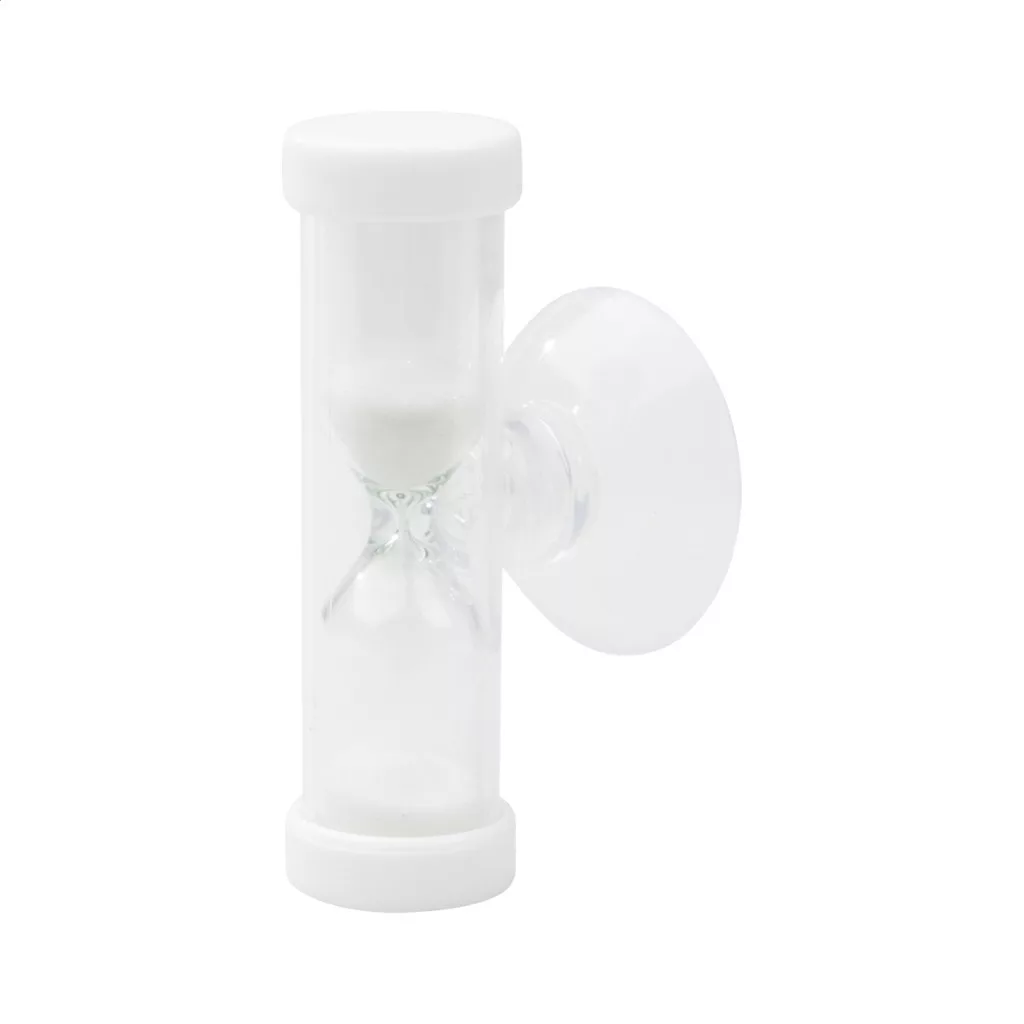 Műanyag, 3 perces homokóra, a tartóval megegyező színű homokkal. Tapadókoronggal rögzíthető. Egyediesítsd digitálisan nyomott papírbetéttel!