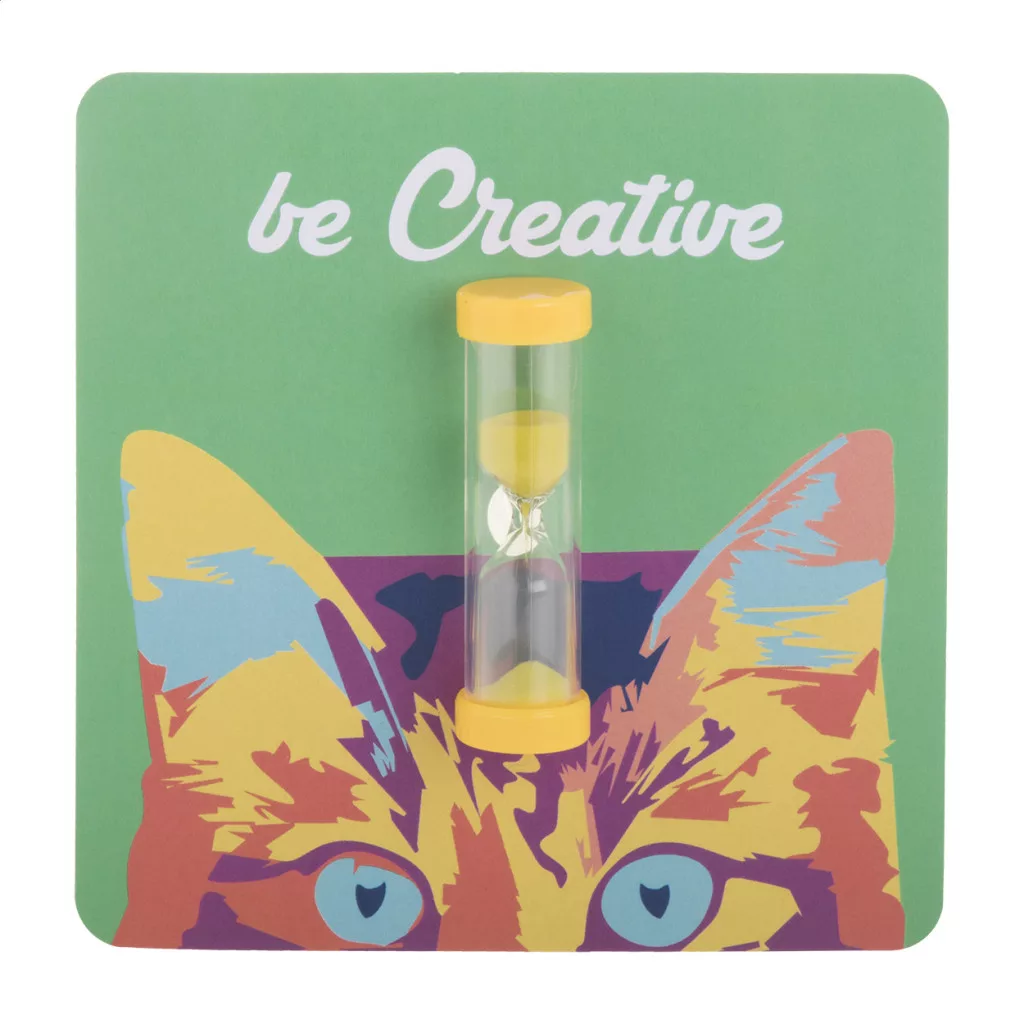 Műanyag, 3 perces homokóra, a tartóval megegyező színű homokkal. Tapadókoronggal rögzíthető. Egyediesítsd digitálisan nyomott papírbetéttel!