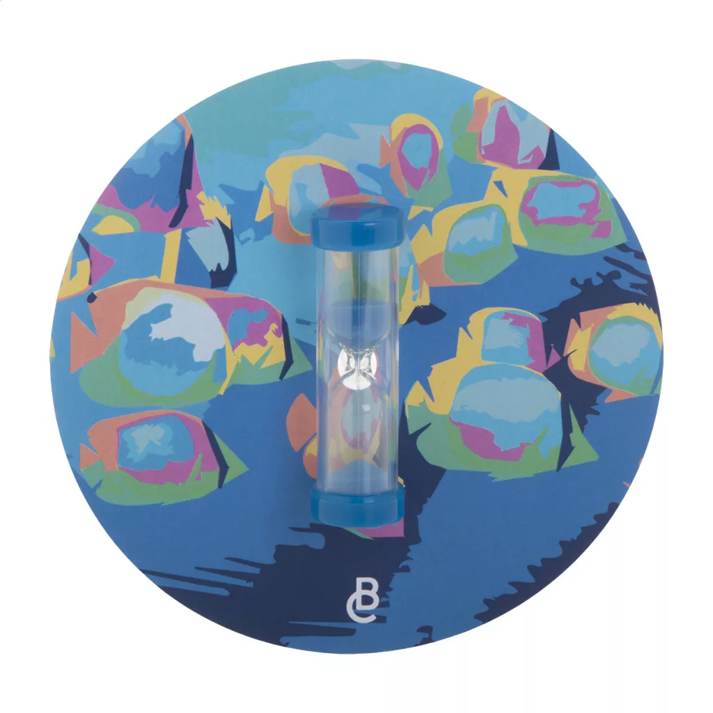 Műanyag, 3 perces homokóra, a tartóval megegyező színű homokkal. Tapadókoronggal rögzíthető. Egyediesítsd digitálisan nyomott papírbetéttel!
