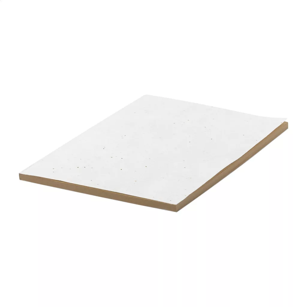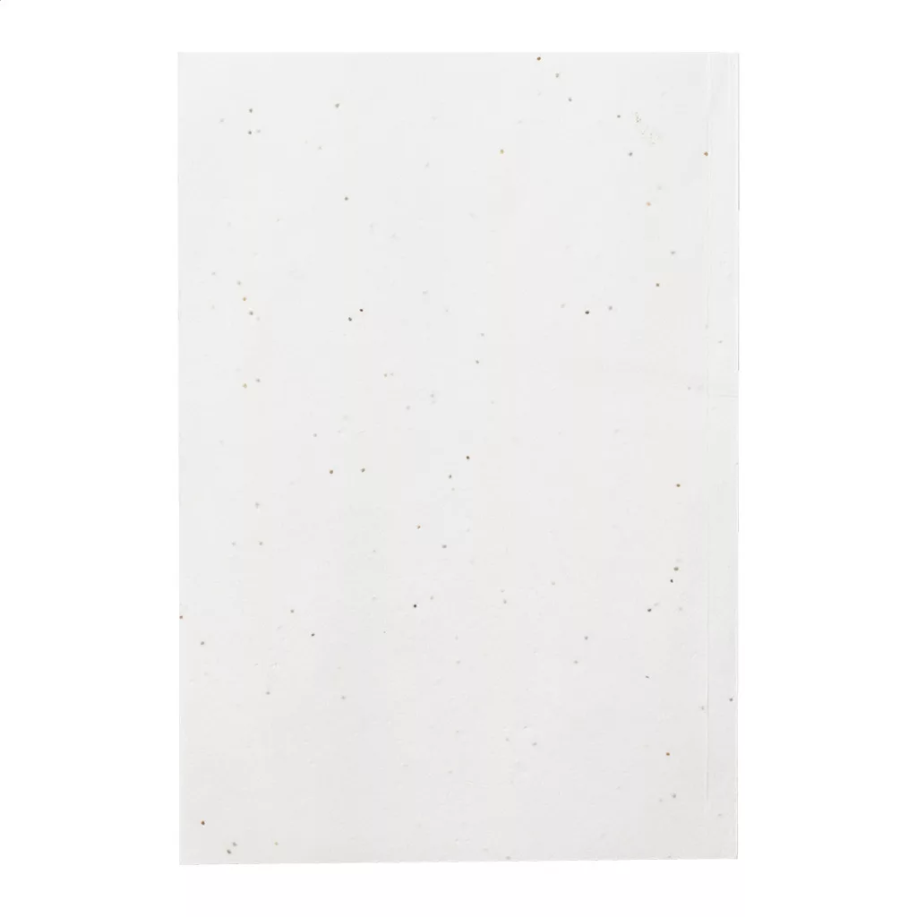 Újrahasznosított kraft papír jegyzetfüzet magpapír borítóval, 60 sima lappal. A magpapír borító különböző vadvirág magokat tartalmaz, melyeket a borító és a füzet szétválasztása után lehet elültetni. A5 méret.