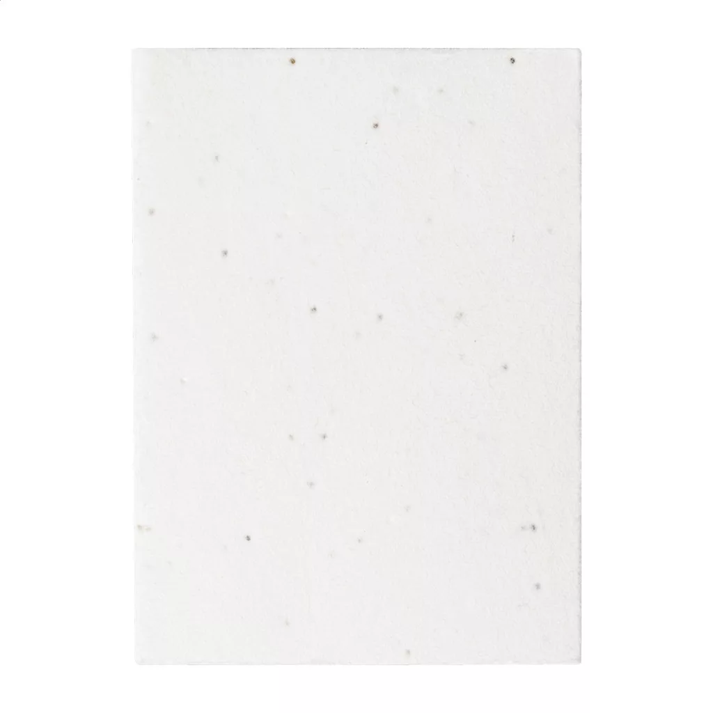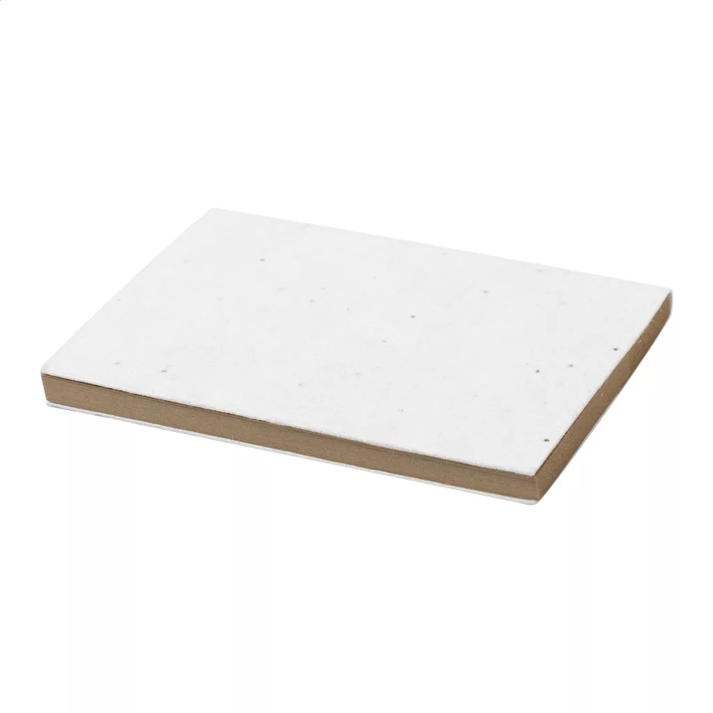 Öntapadós jegyzettömb magpapír borítóval, újrahasznosított kraft papírból készült 50 jegyzetlappal. A magpapír borító változatos színű petúniamagokat tartalmaz, melyeket a borító és a füzet szétválasztása után lehet elültetni.