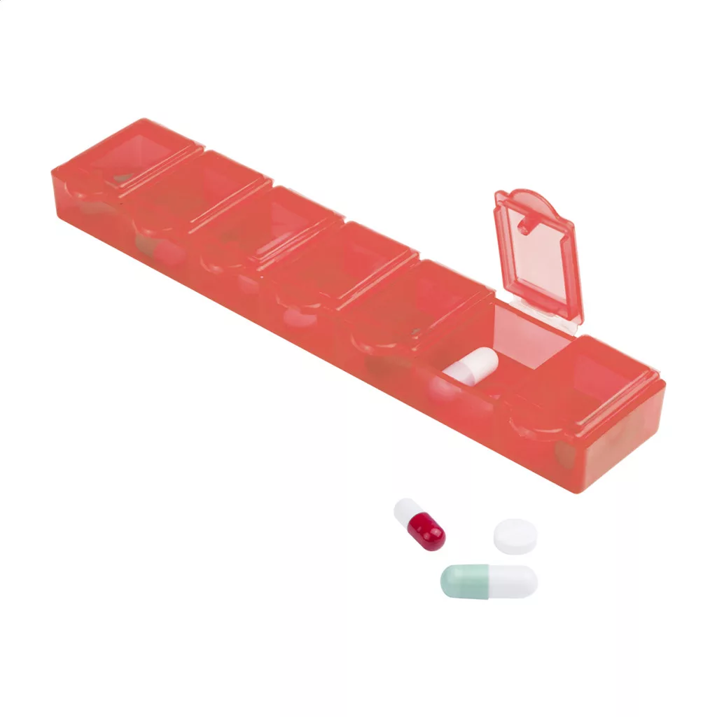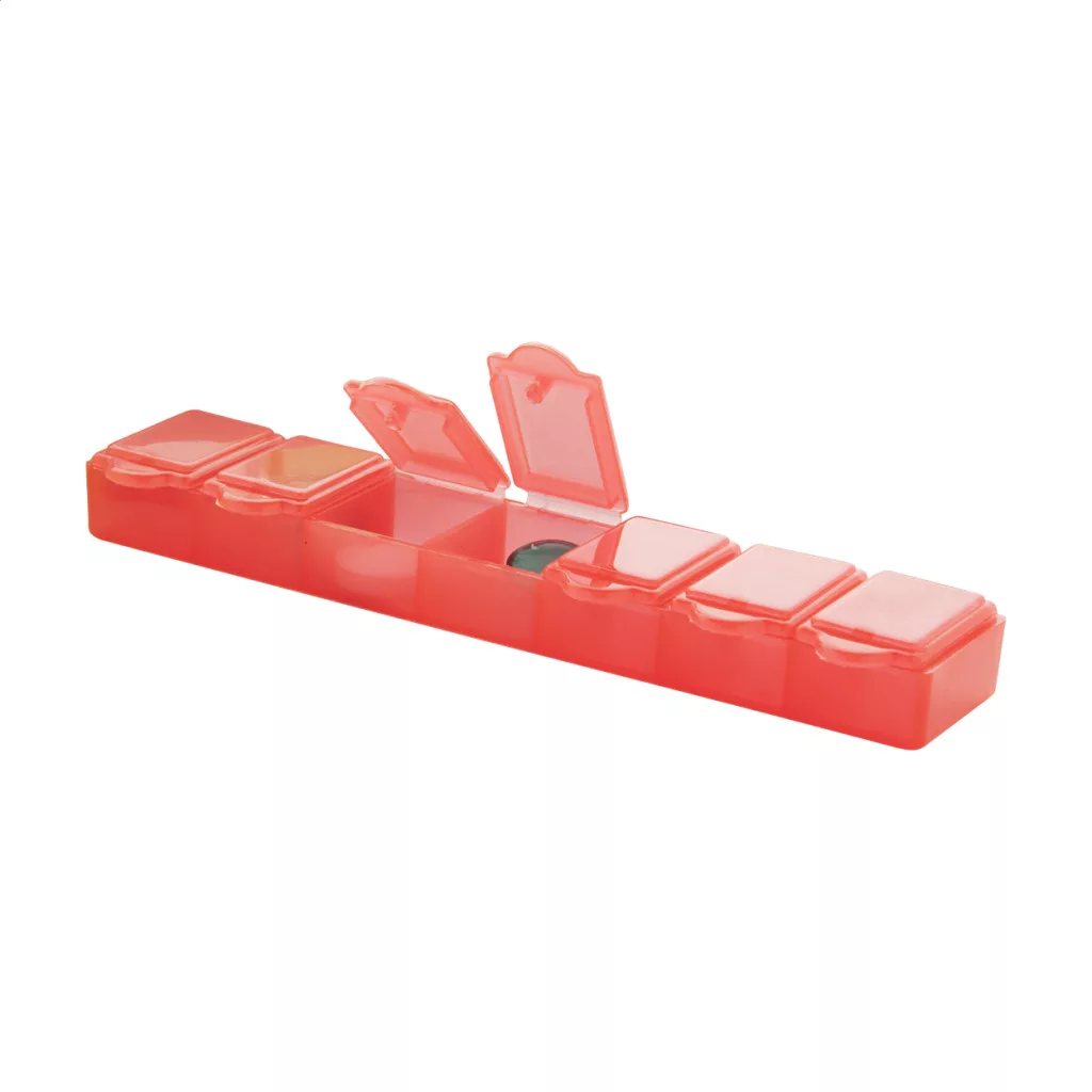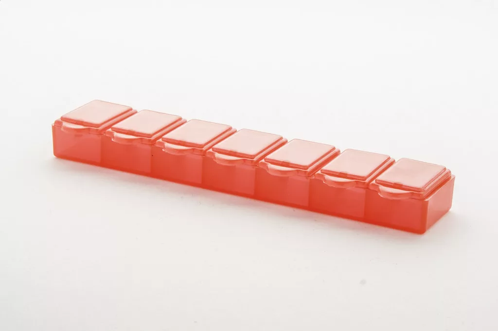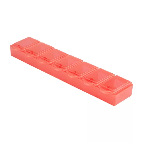 Műanyag, heti gyógyszeradagoló 7 rekesszel.