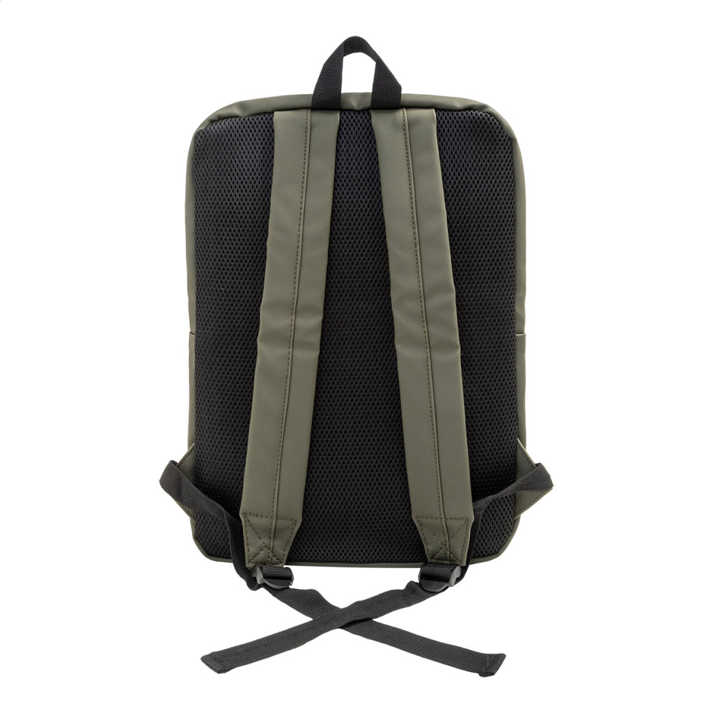 Vízálló RPET vékony laptop hátizsák cipzáras laptoprekesszel (15") és cipzáras elülső zsebbel. Párnázott hát- és vállpántokkal. Műbőr bevonatú 600D RPET poliészter, megkülönböztető RPET címkével.