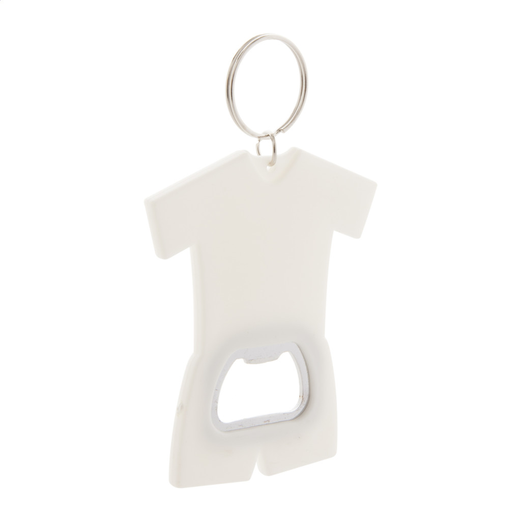 Sportruha formájú újrahasznosított ABS műanyag sörnyitó fém kulcstartóval.