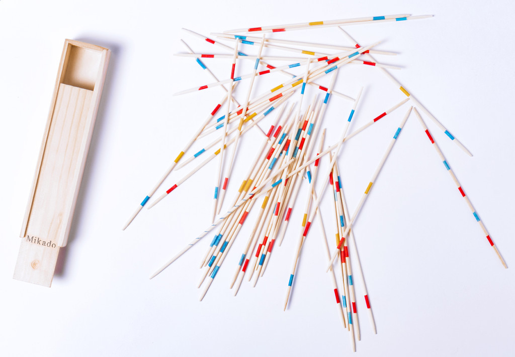 Fa marokkó játék fa dobozban, 41 pálcával.