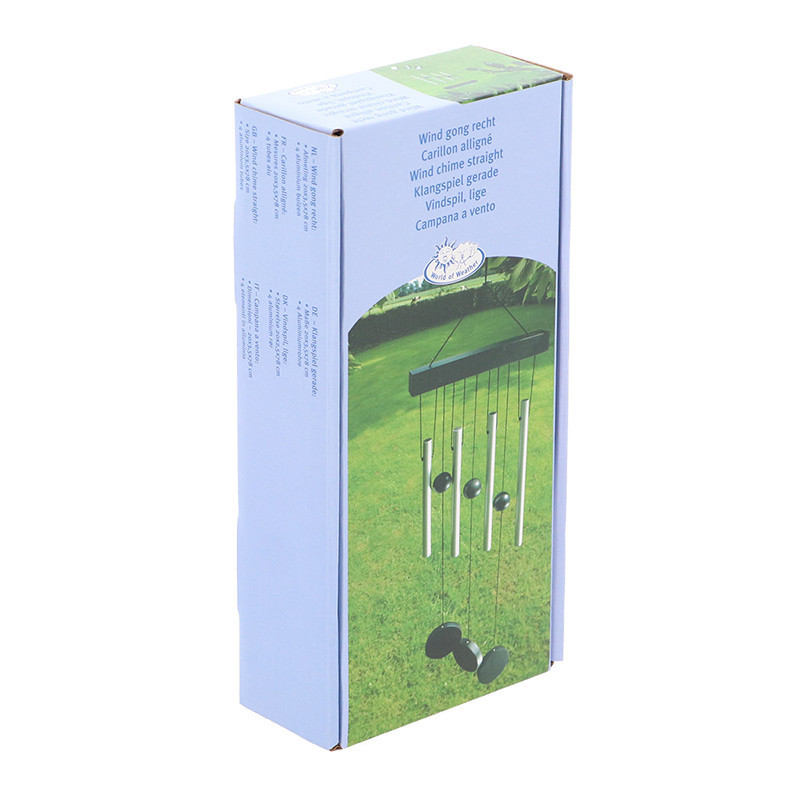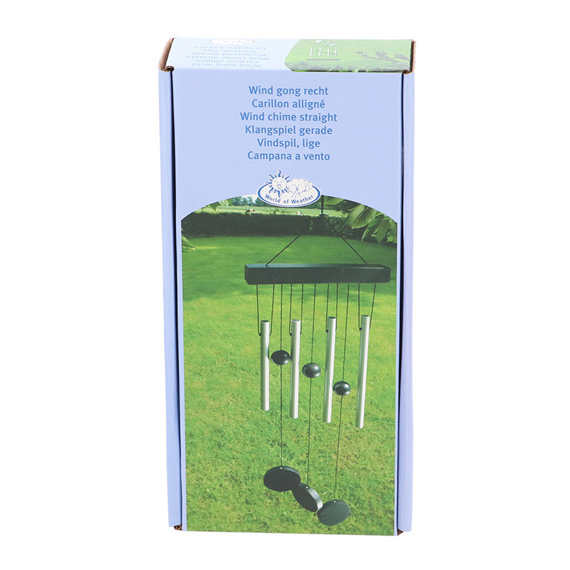 Egyenes szélcsengő, 4 alumínium csővel. A kínaiak ősi hite szerint a szélcsengők nem csak vidám díszként szolgálnak: elűzik a negatív energiákat, miközben a kívánt sikert vagy boldogságot bevonzzák. Kellemes dallammal fogadja az érkező vendégeket.
