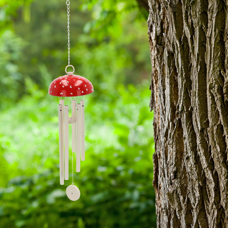 A szél hatására csengő hangot ad, amely nyugtató és pihentető élményt biztosít, miközben a természetes anyagoknak köszönhetően időjárásálló és tartós is. A légyölő galóca formájú szélcsengő igazi figyelemfelkeltő darab, amely tökéletes ajándék vagy személyes dekoráció lehet.