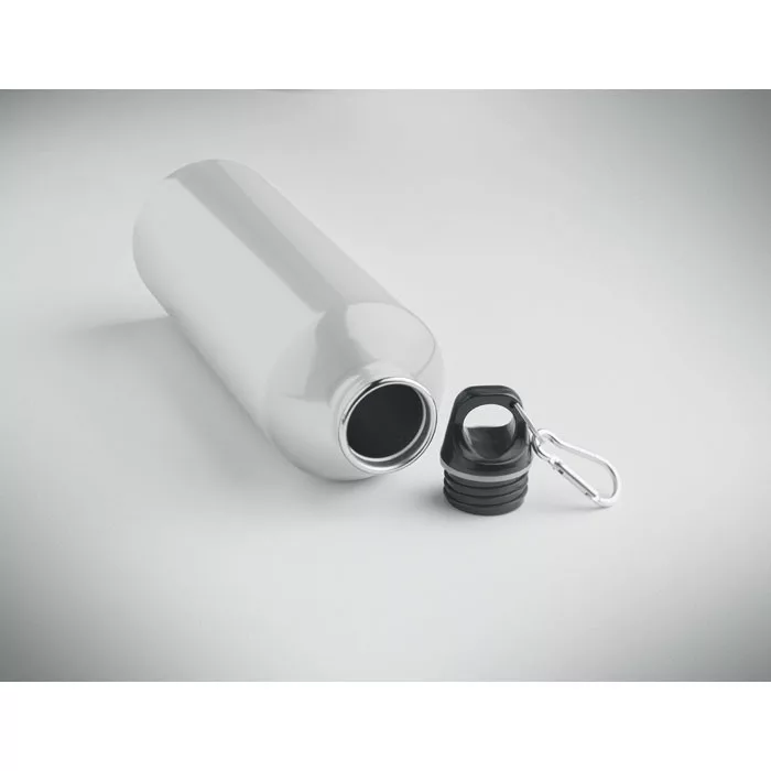 Szimplafalú palack (90% újrahasznosított rozsdamentes acél és 10% rozsdamentes acél) PP fedéllel és karabinerrel. Űrtartalom: 1000 ml. Mivel ez egy szimplafalú palack, hőátadás előfordulhat.