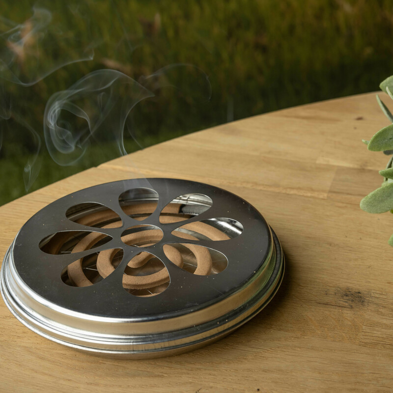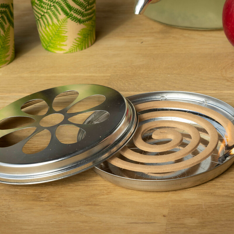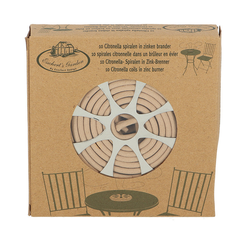 Szúnyogriasztó spirál, fém dobozban, citronella illattal, virág mintával. Ez a csomag 10 db citronella illatú spirált tartalmaz és dekoratív tároló dobozban, ami felfogja az elégett hamut. Egy spirál égési ideje: kb. 8 óra. Helyezd a spirálokat jól levegőző helyre. Ne tedd magas hő vagy nyílt láng közelébe. Kültéri használatra tervezve. Természetes hozzávalókból készült. Összetevők: citronella olaj, fűrészpor, természetes ragasztó.