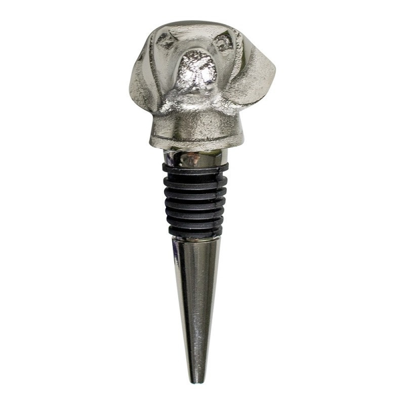 Tacskót formáló, ezüst színű üvegdugó. Elegáns megjelenésű termék, amely tökéletes ajándékként szolgál a minőségi borok és italok kedvelőinek. Gumis végének köszönhetően légmentesen lezárja a palackokat.